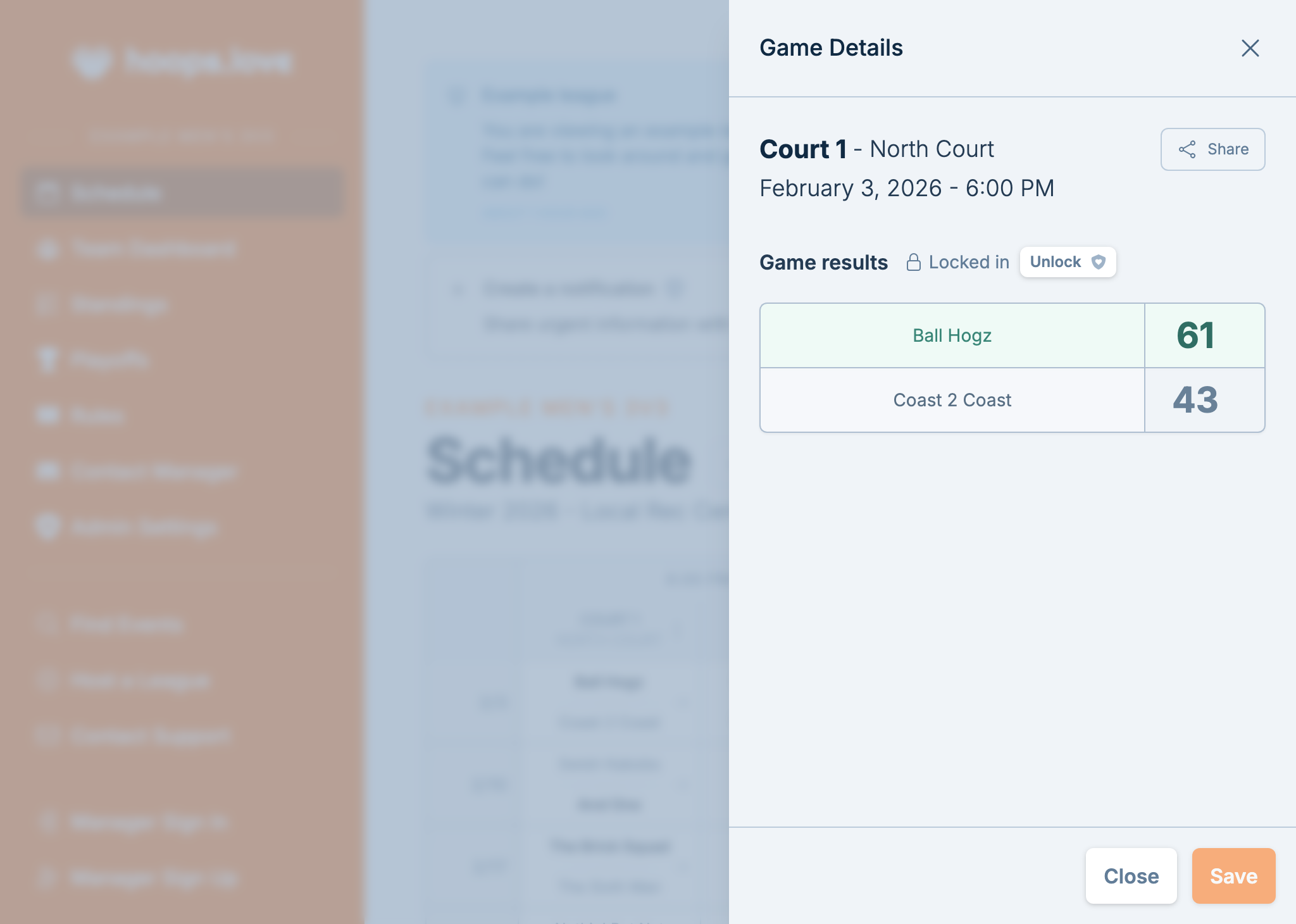 Bad weather? No problem. hoops.love makes cancelling and rescheduling games a breeze.